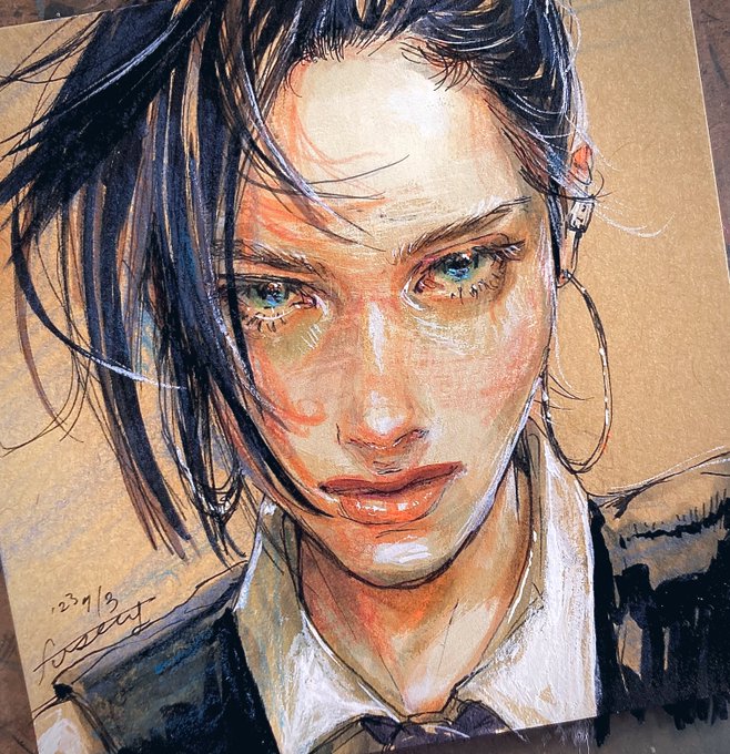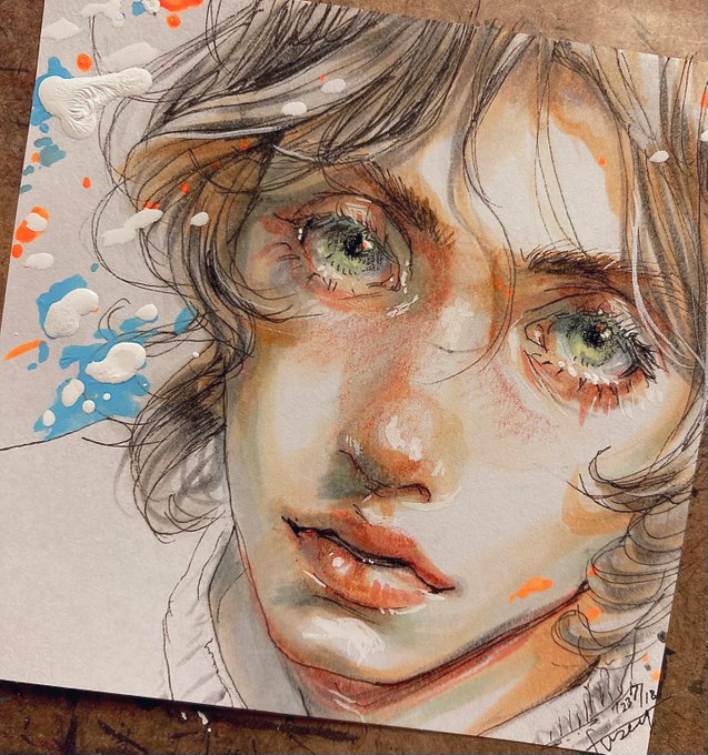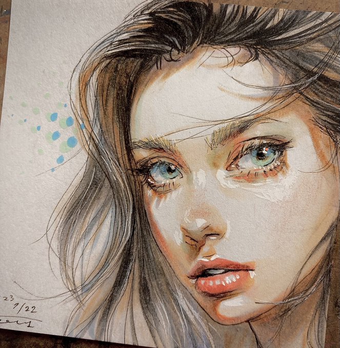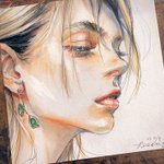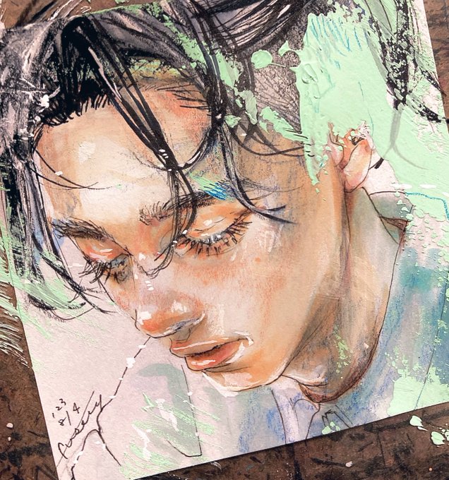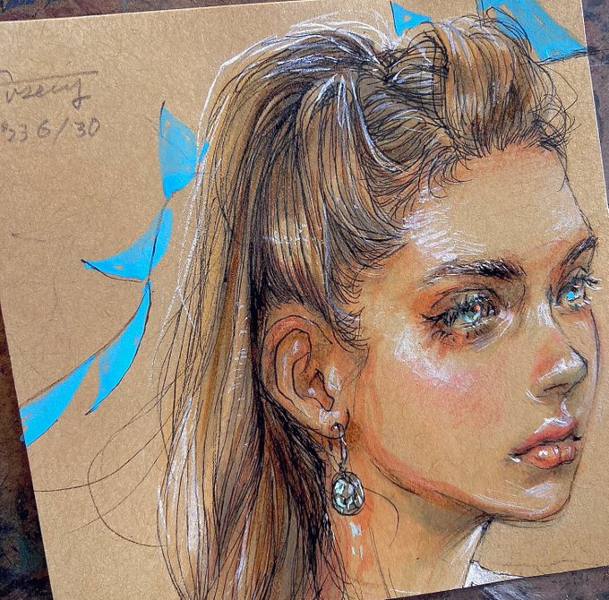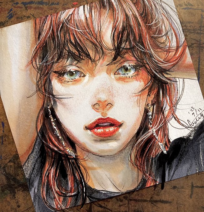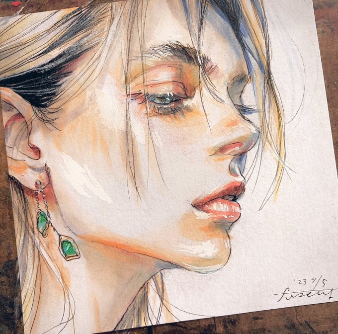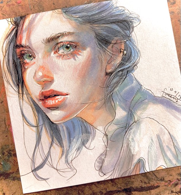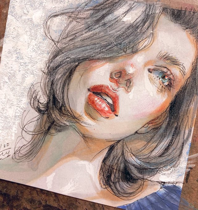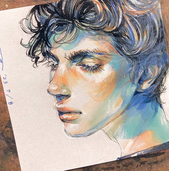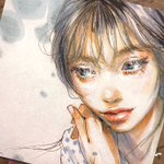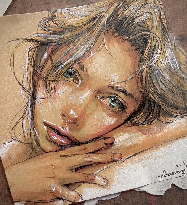 陰を置く、赤味を差す時 あたかも触るようにニブを滑らせます 人に触るように I slide the nib as if by touch. #イラスト #drawing #付箋紙に描いてます