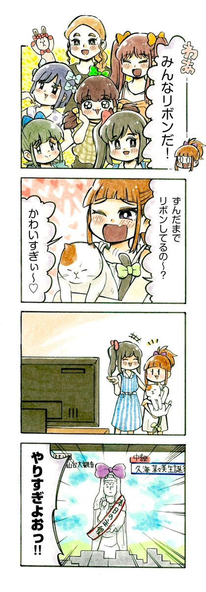 【遅ればせながら…🙇】 ななみんの幸せはみんなの幸せ✨ どうぞ日々健康で沢山の笑顔と幸せに包まれたご活躍ができますように。 お誕生日おめでとうございます🎀🎂🎉🎊🐈 #山下七海生誕祭2023 #ななみん生誕祭2023 #4コマ漫画 #仙台大観音 #リボン