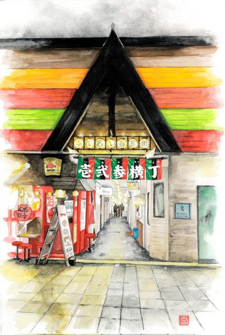 描きました。 フォロワーさんから「仙台のいなたい場所」というご依頼を受け壱弐参横丁を。 仙台はお洒落で素敵なお店がたくさんありますが、昔ながらの飲み屋街も魅力です。 #仙台市 #壱弐参横丁 #アナログ絵 #アクリルガッシュ #アナログ絵描きさんと繋がりたい twitter.com/mikima78/statu…