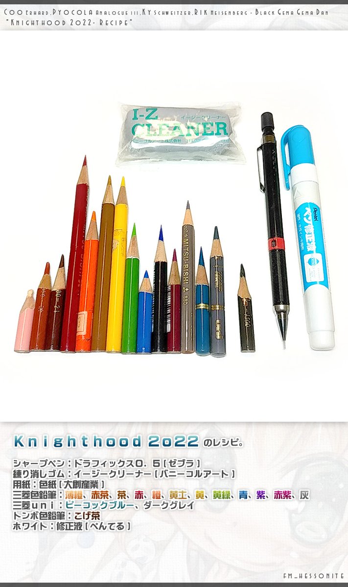 『Knighthood 2o22のレシピ。』 今回の作業風景を簡単にまとめてみました。 作業風景をお楽しみいただけますと幸いです。 #令和クウ少佐誕生日0505 #色鉛筆 #色紙 #アナログ絵 #メイキング #令和もデ・ジ・キャラットを推しています #でじきゃらあーと twitter.com/fm_hessonite/s…