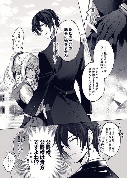 寝言で名前呼ばれるのって最高よなというルカアン落描き そもそも相手に寝てる姿を晒すのって言葉ではない最大限の信頼の証でとてもエモくてとても性癖…ちなみに10分で寝落ちたアン( ˇωˇ ) #仮初の執事と公爵の秘事 #創作男女