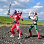 #夜のフィギュア撮影会 お題「今月のベストオモ写」(既出) あまり撮影出来てなかったですが‥ この2枚がベストかも🤣 #仮面ライダーゼロワン #仮面ライダーアクセル #仮面ライダー迅 #オモ写