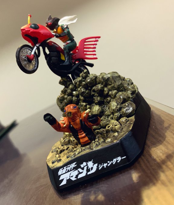 #ニチアサフィギュア改造部 #仮面ライダーアマゾン 仮面ライダーアマゾン(アレンジver.) フィギュアライズスタンダードの仮面ライダー響鬼を改造してアマゾンライダーを作りましたー(´∀`*) アマゾンなんでクラッシャー(口)は開閉出来るようにしてます