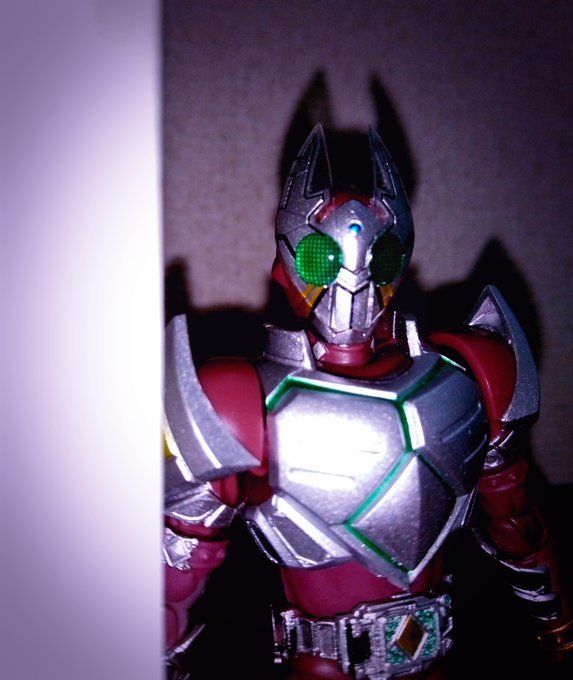 #夜のフィギュア撮影会 テーマ『誰』 誰だ 誰だ 誰だ 壁の傍から覗く影 赤い姿の… (0w0)ダディヤナザーン! ナズェミデルンディス! そして橘さんが何故見ていたのかは 誰も知らないのであった #仮面ライダーギャレン #橘さん #ガッチャマンの歌