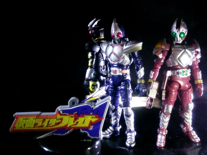 #夜のフィギュア撮影会 お題【3人】 “研ぎ澄まされた勇気にして” “BLADE” “BRAVE” #仮面ライダーブレイド #仮面ライダーギャレン #仮面ライダーカリス #仮面ライダー剣 #掌動