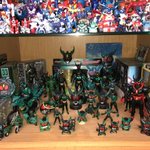 #夜のフィギュア撮影会 お題【仲間】 一時代を戦い抜いたヒーロー達 今は新たな夢へと向かい力を合わせる仲間 道は分かつとも その熱い思いは変わらない··· #カブトライジャー #ガオブラック #仮面ライダーゾルダ #仮面ライダーギルス