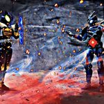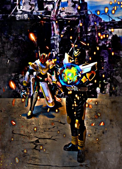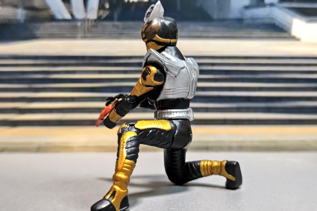 #夜のフィギュア撮影会 テーマ【ハプニング】 ライダー好きはなりたいライダーとか、ライダーなったらどう戦うとか妄想しますよね! でも仮面ライダーになれるアイテム手に入ってもこんなハプニングだってあるのでは? #風観撮り #仮面ライダーシザース #仮面ライダーザビー #仮面ライダー黒影