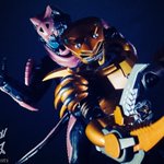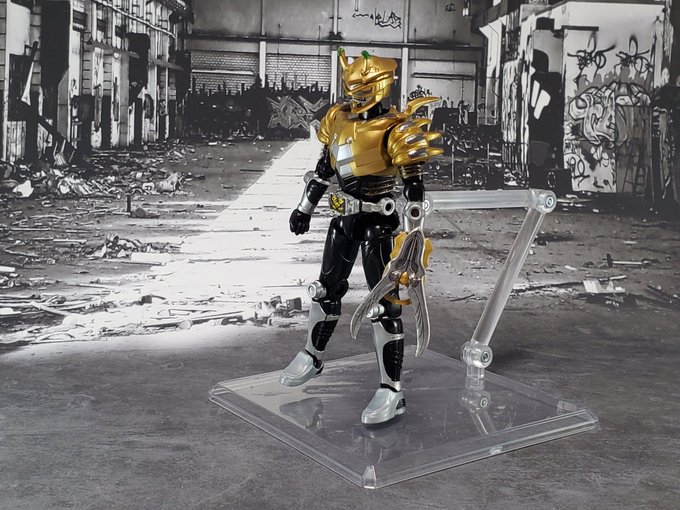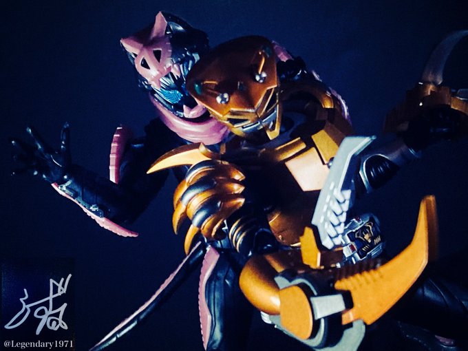 #夜のフィギュア撮影会 テーマ【ハプニング】 ライダー好きはなりたいライダーとか、ライダーなったらどう戦うとか妄想しますよね! でも仮面ライダーになれるアイテム手に入ってもこんなハプニングだってあるのでは? #風観撮り #仮面ライダーシザース #仮面ライダーザビー #仮面ライダー黒影