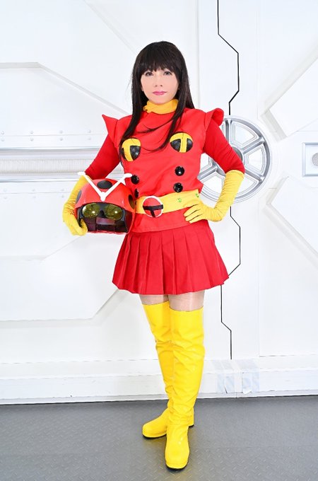遺影の一枚。この日俺が買ったばかりのカメラで一文字隼人みたく撮影したストロンガー友紀子の勇姿。背が低くて巨乳だから大好きなスカイライダーよりこっちにしたらしい。 #シン・仮面ライダー観た #コスプレイベントで言われた衝撃的な一言 #仮面ライダーストロンガー