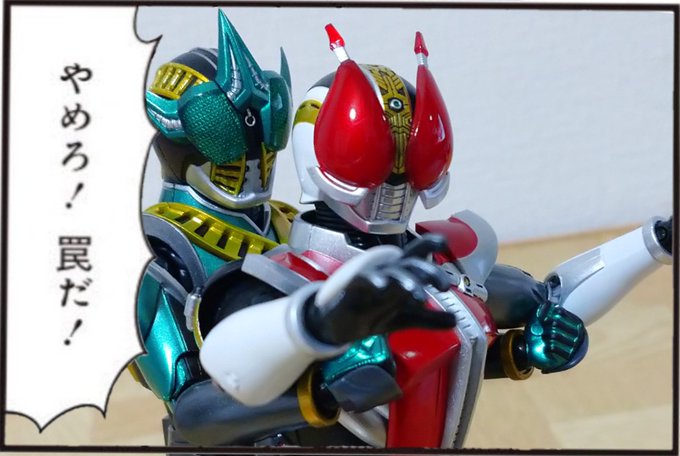 #夜のフィギュア撮影会 お題「連携」 ゼロノス「最初に言っておく俺はか〜なり〜強い!」 「デネブ!最後までちゃんと付き合えよ!」 デネブ「わかった侑斗!ちゃんと仕事こなすからね♪」 ゼロノス「俺達2人がいれば、こんな敵、簡単に倒せるぜぇ!」 #仮面ライダーゼロノス #仮面ライダー #食玩