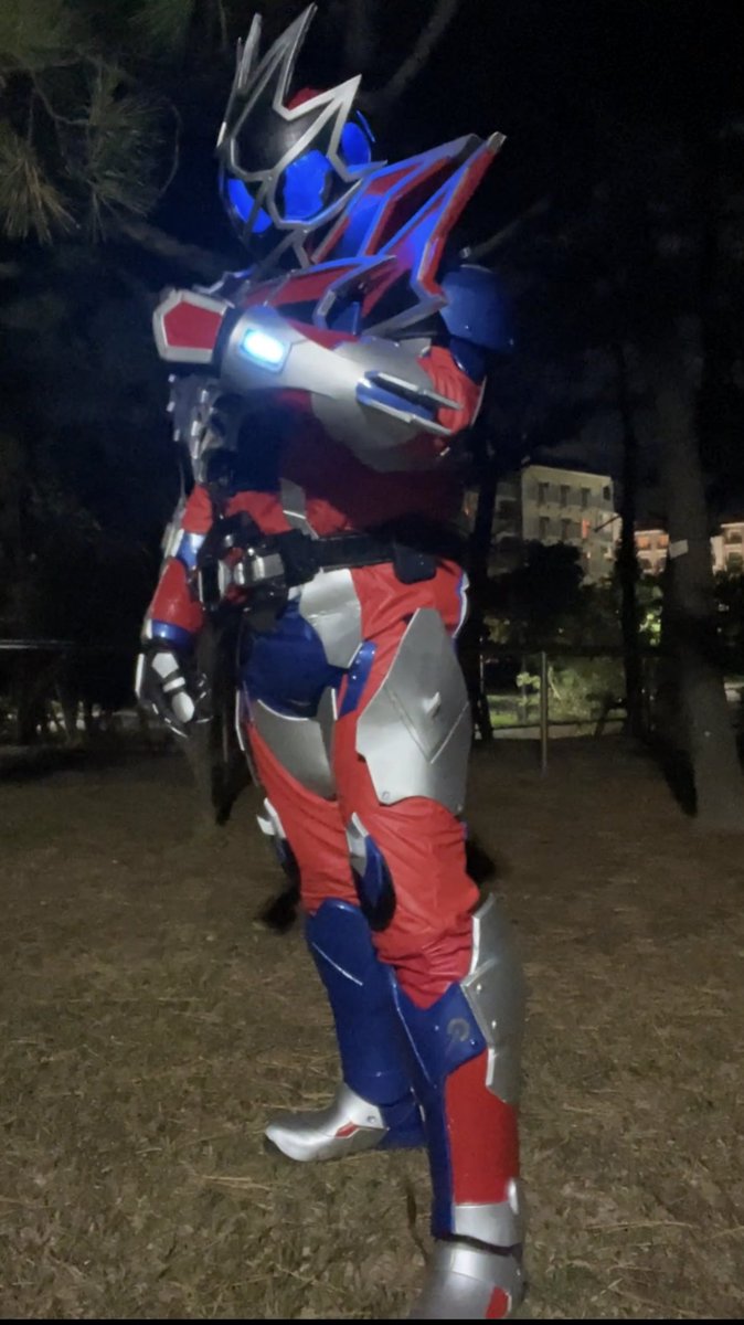一応完成という事で装着しました! ちょいと家からは少し離れた公園の隅っこでこっそり撮ってたが夜釣りの人や犬の散歩な方に見られてしまったヨ💦 何はともあれ一応出来たわけですが、やはり気になる所とか多々あるので…… 我が全身全霊を掛けて…必ず改修する! #Cosplay #仮面ライダーデモンズ twitter.com/i/web/status/1…