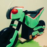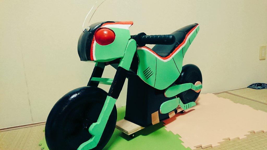 バトルホッパー(リトルホッパー笑) ひとまず完成しました❗ リビングの汚れたジョイントマットをリメイクしました。 バイク風のコロコロ乗り物で5歳児にピッタリなサイズ感です。 初めての試みでしたが、とても作っていて楽しかったです! #仮面ライダーブラック