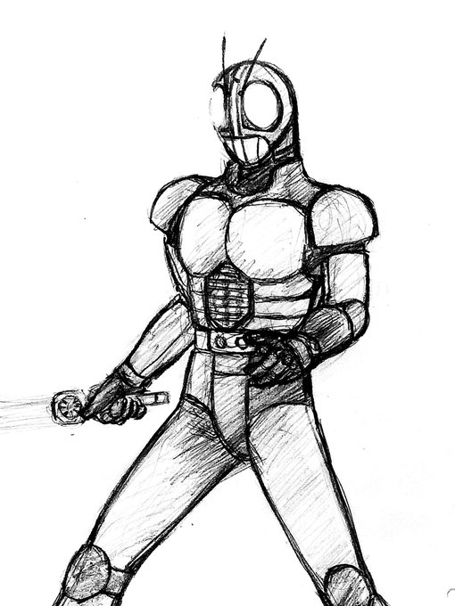 多分年賀状用に描いて当時使わなかった絵、隣に着物姿の女の子の絵があったから😆。今でも1番好きなライダー、動画マン時代まさに悩み苦しい時元気を貰ってた😃。 #お絵描き #イラスト #仮面ライダーブラックRX