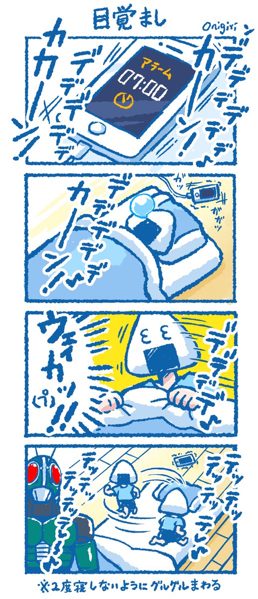 【異世界転生?】 第1話にて唐突過ぎる復活を遂げた“彼”。そりゃ当惑するわな…。 今年は前世のホッパーさんにとてもお世話になりました。よく描いたな―しみじみ🏍️ #4コママンガ #仮面ライダーブラックRX #アクロバッター