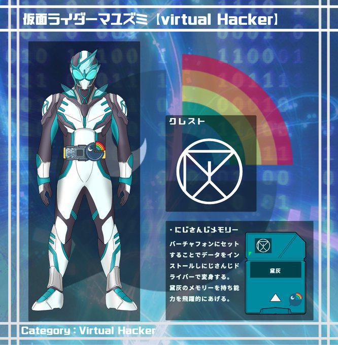 仮面ライダーマユズミ 【virtual hacker】 『稀代のハッカー! インナーカラー! 仮面ライダーマユズミ! virtual hacker…』 #灰画 #仮面ライダーライバーズウォーズ