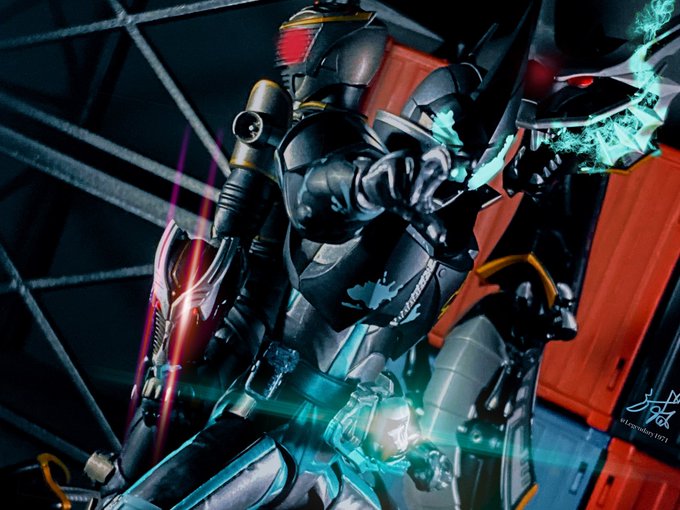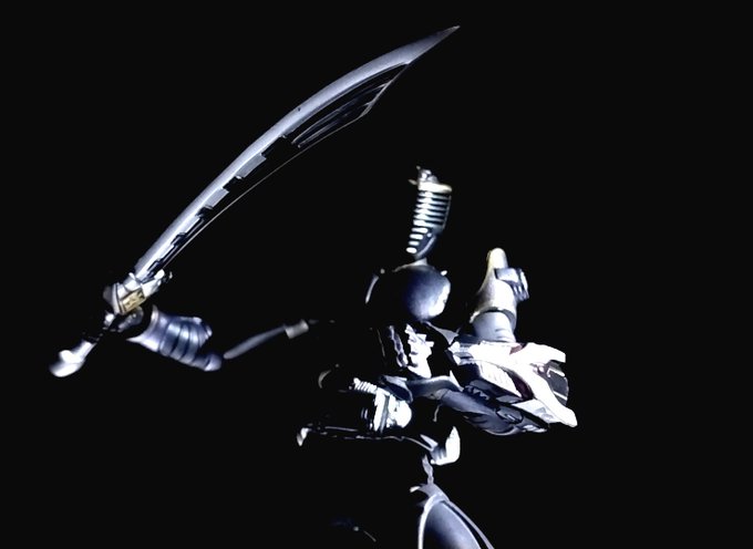 #夜のフィギュア撮影会 テーマ【影】 正義と悪、陰と陽、光と影 例え悪で陰で影でも構わない どちらが強者でどちらが弱者か それで全てがひっくり返る #風観撮り #仮面ライダーカリバー #仮面ライダーリュウガ