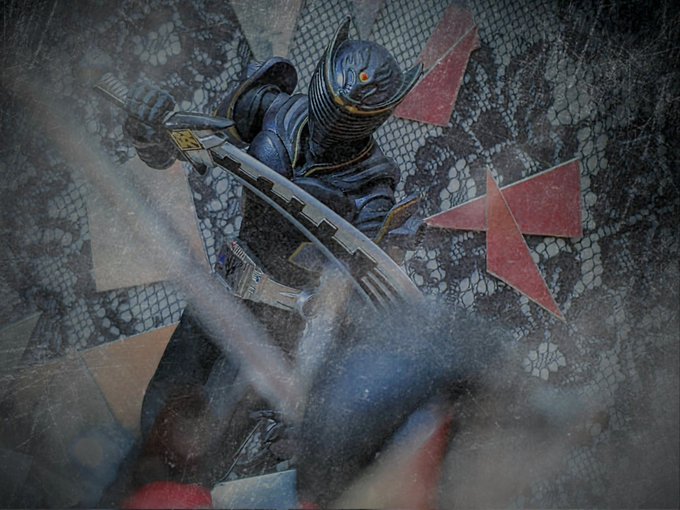 3/20 お題 『フリー』 薄れゆく意識の中で見た者は… 前にフォロワーさんから教わった手ブレ撮影を取り入れてみました #夜のフィギュア撮影会 #figma #フィギュア撮影友の会 #オモ写 #仮面ライダーリュウガ