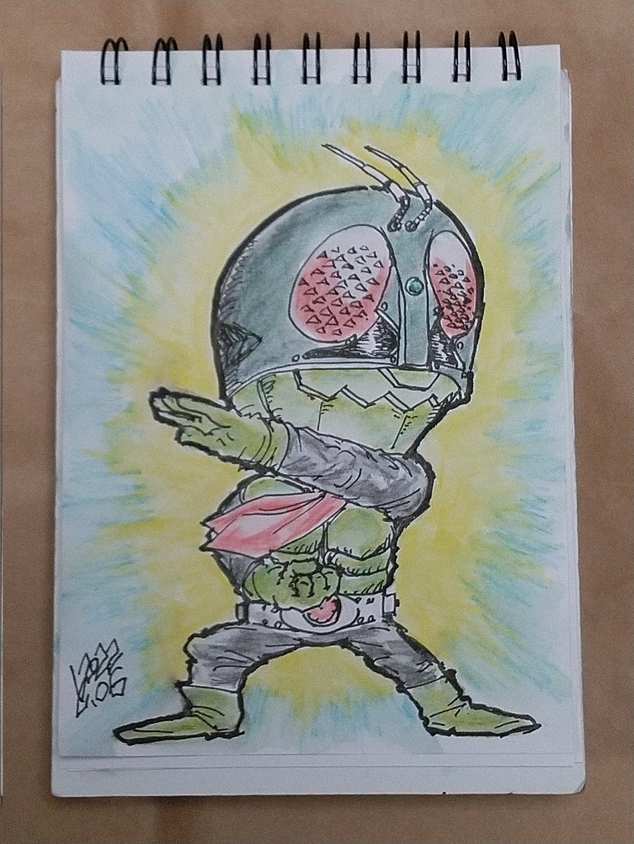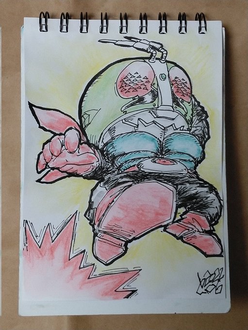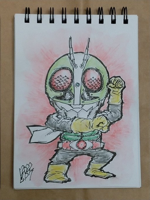 #らくがき #ボールペン #ibispaint #模写 #仮面ライダーV3 #仮面ライダー生誕50周年 ライダー絵 9枚目 仮面ライダーV3 力と技の風車が廻る 父よ母よ妹よ 風のうなりに血が叫び 力の限り ぶち当たる