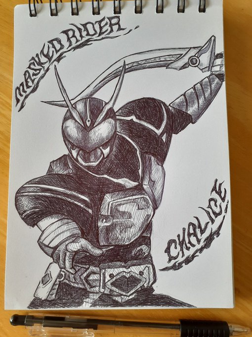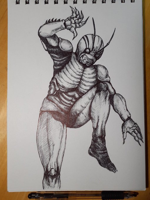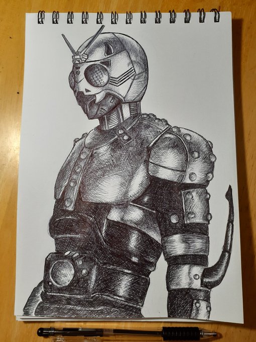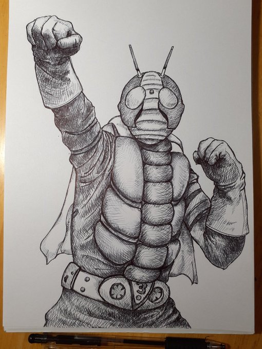 #らくがき #ボールペン #模写 #仮面ライダークウガ #仮面ライダー生誕50周年 ボールペンの絵は出来上がり 今晩、ibisでカラー化します 私、これ描いて一番好きなクウガを一番描くの苦手な事が判明しました (;つД`)