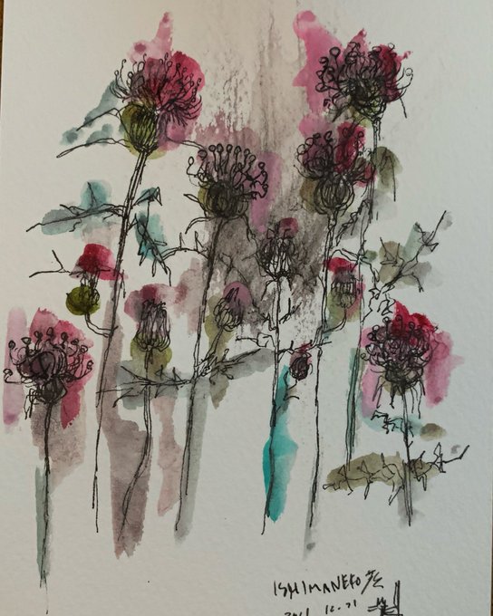花 20211221 #thisisgallery で販売予定 #pendrawing #ペン画 #絵描きさんと繋がりたい #水彩画 #watercolor #伊島猫 #penart #penillustration #アザミ #thistle #花の絵