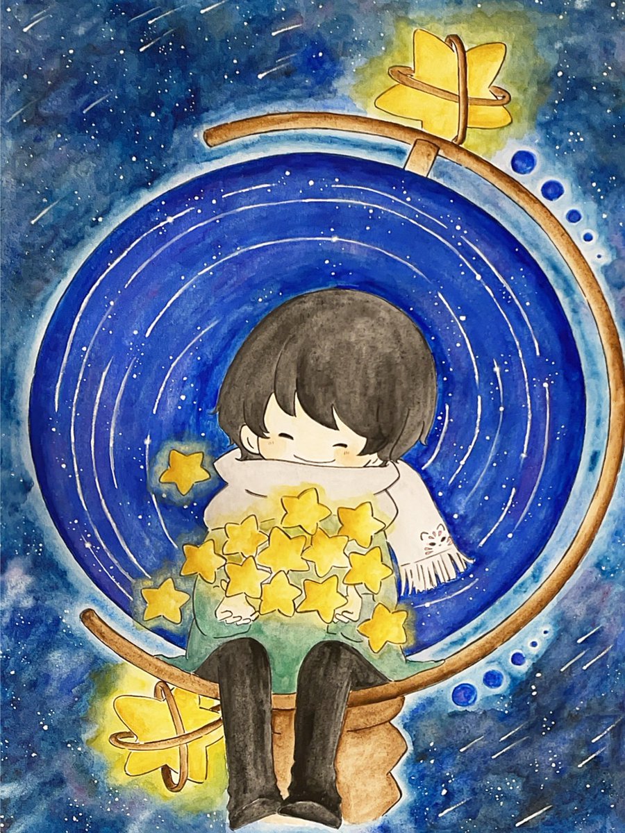 かしたろさん、10周年おめでとうございます。 だいすきと感謝を込めて、"ラピスラズリ"をイメージして描かせて頂きました。どんなことでも前向きに思わせてくれるかしたろさんらしいこの歌がだいすきです。 #伊東歌詞太郎10周年 #伊東歌詞太郎さん twitter.com/kstr___ito/sta…