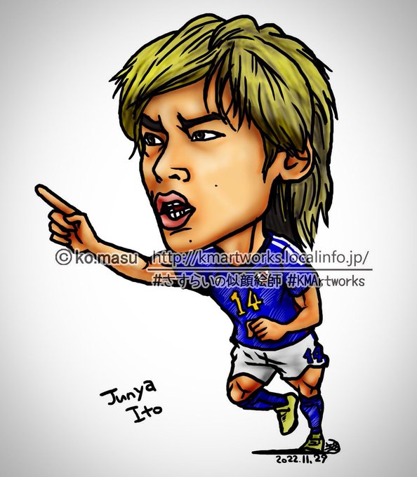 This is my #artwork #伊東純也 選手 @ItouJky @StadeDeReims #stadedereims @Ligue1UberEats #ligue1 #柏レイソル @kashiwareysol_p #サッカー日本代表 #samuraiblue #worldcup #qatar2022 #football #soccer #jleague #illustration #kmartworks #イラスト #似顔絵 #さすらいの似顔絵師