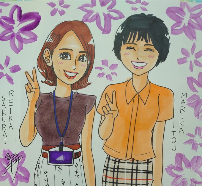 ドン! 今日描いた乃木坂ちゃんで〜す(*^^*) お耳に合いましたら(*´ω`*) #似顔絵 #乃木坂46 #伊藤万理華 #桜井玲香 #お耳に合いましたら #乃木坂46好きな人と繋がりたい #乃木坂イラスト