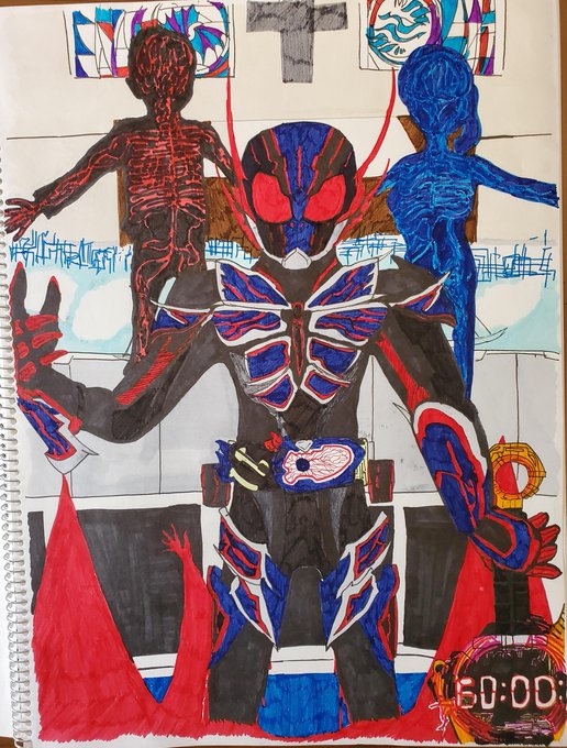#紅白お絵描き合戦2021 #紅組イラスト2021 ※エントリー参加者のみ利用可能タグ。便乗ツイートはご遠慮願います。 詳細は けばけばお絵描き競技場 @kbakba_arena 固ツイ参照 1枚目は仮面ライダーエデン #伊藤英明 #模写 #コピック #イラスト #特撮絵描きさんと繋がりたい #芸術同盟