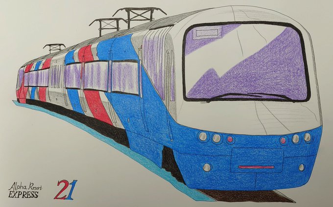 #アナログイラスト #絵描きさん交流会 #絵描きさんと繋がりたい #絵柄が好みって人にフォローされたい #伊豆急行 #イラスト 伊豆を走る 伊豆急行【AlphaResort21】 懐かしい伊豆急行オリジナル塗装にして顔が原型スタイル!