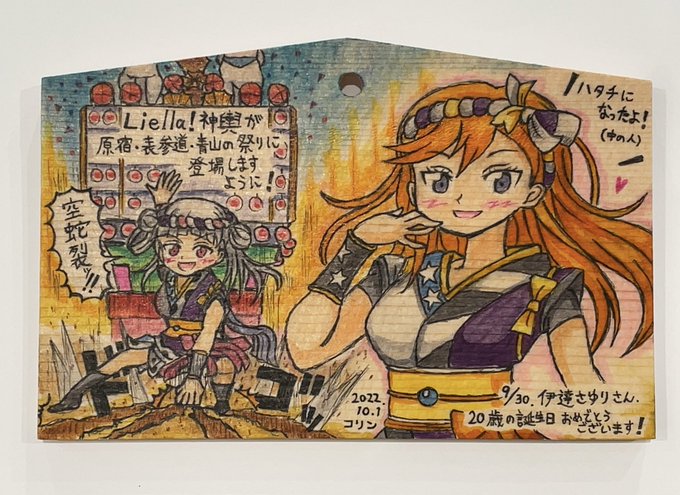 穏田神社に絵馬奉納しました。アニメ2期8話挿入歌『Chance Day, Chance Way!』衣装の澁谷かのんと嵐千砂都を描きました。 9/30は声優.伊達さゆりさんの誕生日だったので、改めてお祝い致します(・∀・) #lovelive #Liella #伊達さゆり生誕祭2022 #伊達さゆりBDパーティー