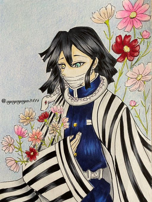 コスモスを積んだものの、届けてもいいのか悩み出す伊黒さん インスタのフォロワーさんのお誕生日に描かせていただきました😊♥️遅刻なんだけど😅 #伊黒小芭内 #伊黒小芭内イラスト #鬼滅の刃 #鬼滅の刃ファンアート