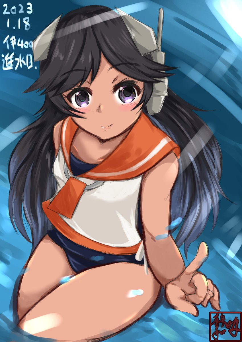 #艦これ版真剣お絵描き60分一本勝負_20220118 #艦これ版深夜の真剣お絵描き60分一本勝負 #伊400進水日 準備運動的な (進水日って描き終わってから気づいたけど)進水日おめでとう!