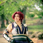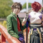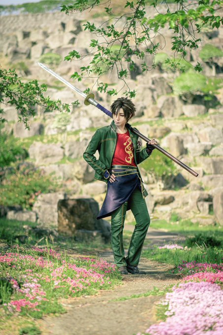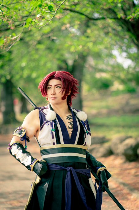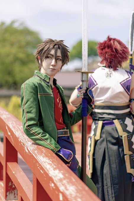 これは何だか不思議な力で変身しそうな二槍 蜻蛉切(網野ワタル) 御手杵(藤晴さん)@fujiharuparusan 撮影(みつさん)@mitu_3434 #会津村 #コスプレ春の陣in日新館