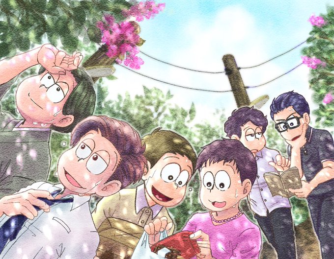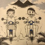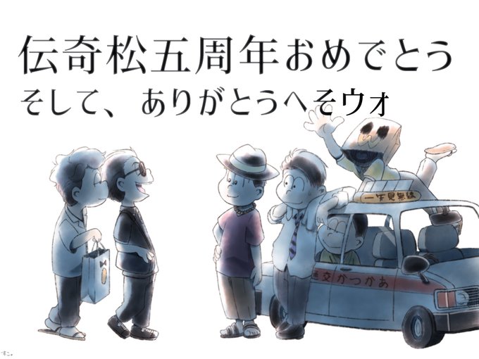 #伝奇松5周年おめでとう #伝奇松五周年おめでとう #8月10日は伝奇松5周年 過去作ですが、お祝いさせてください。皆さんとのりものです。下ふたりはバイクじゃなくて、本当は自転車乗りですよね…。