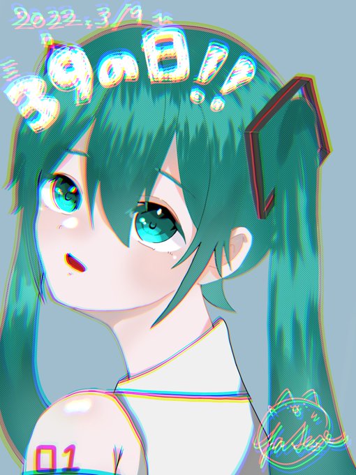 2022,3/9 『39の日!!』 滑り込みセーフだろ。まだ日明けてないし。フェフェッフェェェンハッフェン┗(˘ω˘ )┓三 #ミクの日2022 #ミクの日 #滑り込み #伸びろ #イラスト #イラスト好きな人と繋がりたい #バーチャルシンガーイラスト