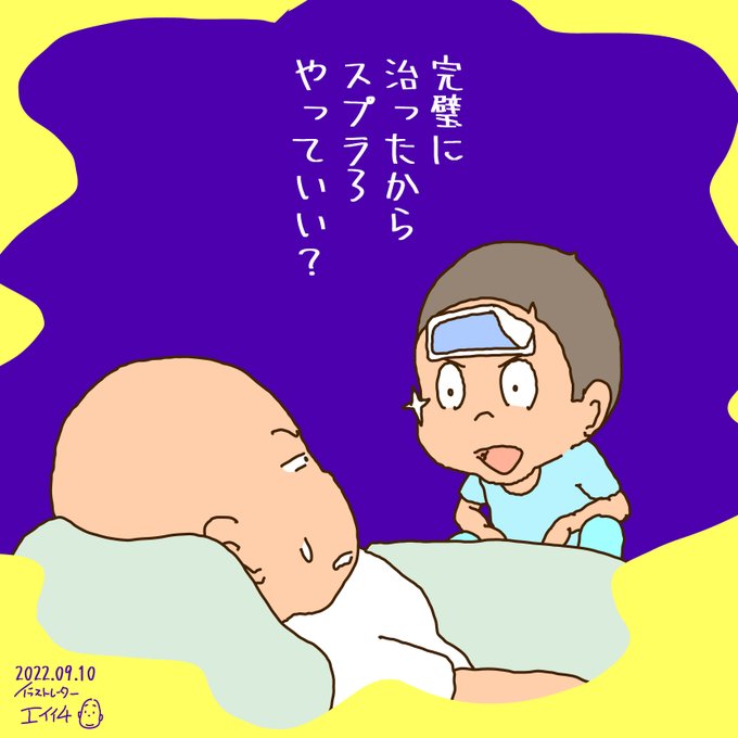 楽しみすぎて復活早いパターン #今日は安静にゲームをする #スプラトゥーン3 #Splatoon3 #電子書籍好評発売中 #絵日記 #育児日記 #illustration #art #イラスト #絵 #8才 #息子 #育児漫画 #低学年 #ゆるいイラスト #ゆるい絵