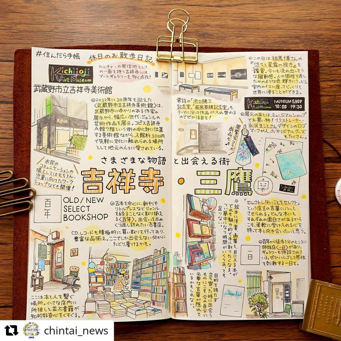 【お仕事情報】 株式会社CHINTAI様 「 #住んだら手帳 」番外編♪休日のお散歩日記を描かせていただきました! 今回のスポットは「吉祥寺・三鷹」。 新旧入り交じるカルチャーの発信地でワクワクする休日を。 instagram.com/p/CpM6U57JLsU/… #手帳の中身 #トラベラーズノート
