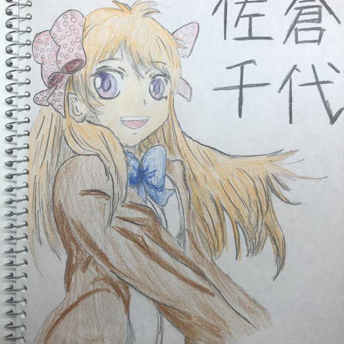 ちよちゃん! 全然上手く描けなかった😭 目が浮いてる… 本物は本当に可愛いのになぁ〜💦 もっと上手くなったろ! #落書き #模写 #色鉛筆 #佐倉千代 #パラスちゃん #月刊少女野崎くん #絵描きさんと繋がりたい #絵描きさんに学びたい