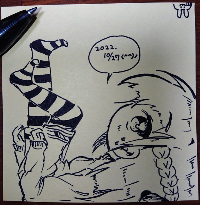 #sensei #pixiv今日のお題 #縞ニーソ #ボールペン #ふせん #モノクロ #ballpointpen #体操 この体勢とてもキツイ(×_×;) sketch.pixiv.net/items/49312683…