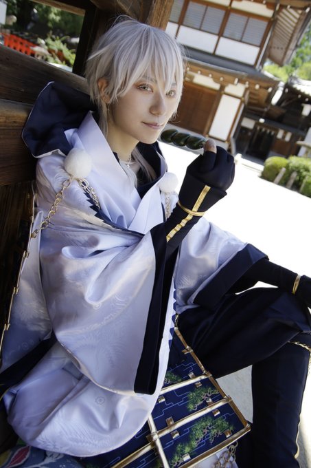 【cos】刀剣乱舞*鶴丸国永 なーんてな Photo:瑛さん(@mitaxxn) #何か食べてる刀剣男士 THX, @shimogamocoseve @shimogamosalon #鴨コス #藤森神社