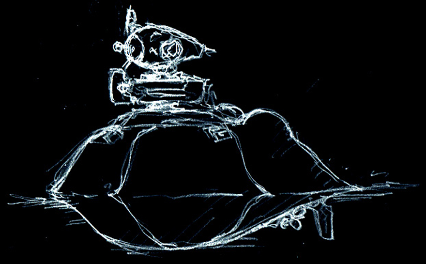 シュトラール軍・無人水上偵察機『オスクリュー』 アイディアスケッチ再掲。 活動域を水上に限定したところ、地上に上がらないならホバーじゃなくても良かないか?・・・となり、スクリュー推進となった。 #マシーネンクリーガー #作っていいのよ