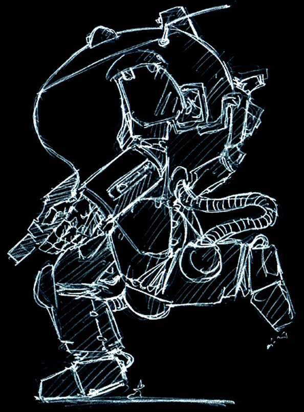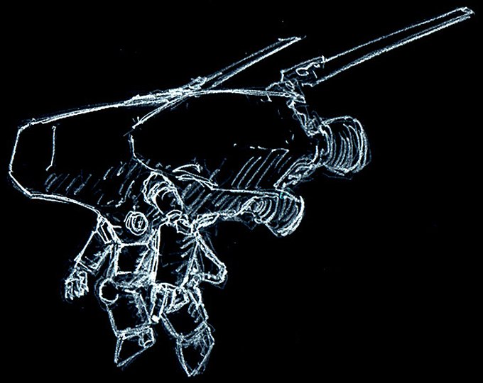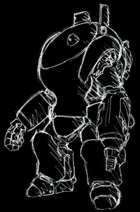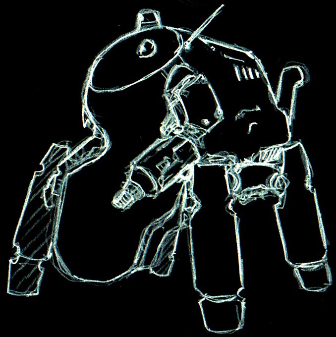 傭兵軍・LAFS『リガディエーター』 新作アイディアスケッチ。 古いネタを見返していると新しいネタが出てくるもんだね。 グラジエーターの小型版。 ヘビィならぬライトアーマードファイティングスーツ。 これはもう普通のSAFSと大差ない気がする。 #マシーネンクリーガー #作っていいのよ