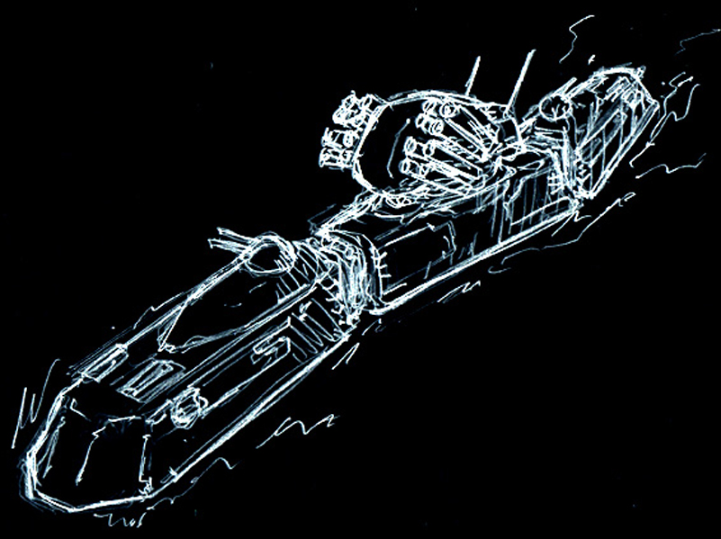シュトラール軍・試作ホバー戦闘艇『ジレーネテストタイプ』 アイディアスケッチ再掲。 戦闘AIを搭載せずパイロットによって操縦される、機体性能をテストするための試作機。 コクピットはフレーダーマウスの物の流用であり、防弾性能は考慮されていない。 #マシーネンクリーガー #作っていいのよ