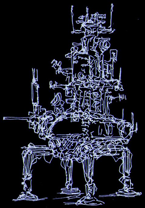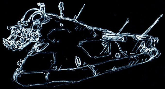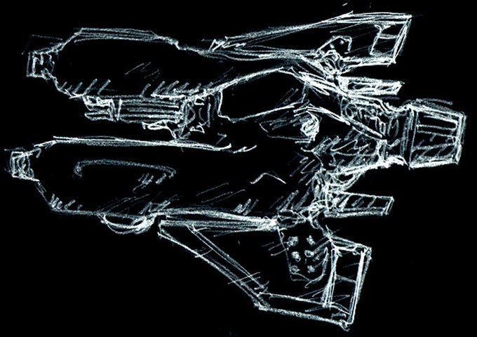 プルート・拠点防衛戦闘機『ケルベロス(シェンケルヘッド)』 アイディアスケッチ再掲。 ケーニヒスクレーテ頭のケルベロスが居るんだからシェンケル頭のケルベロスが居たっていいじゃないか! #マシーネンクリーガー #作っていいのよ