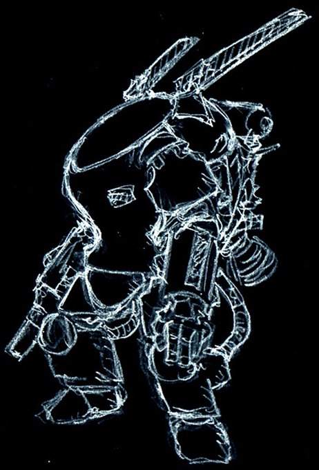 傭兵軍・装甲戦闘服『AFS-Mk28』 アイディアスケッチ再掲 SAFSが開発されなかった世界線ではAFSは改良され続け、遂にMk28に達した。 #マシーネンクリーガー #作っていいのよ ニャー。