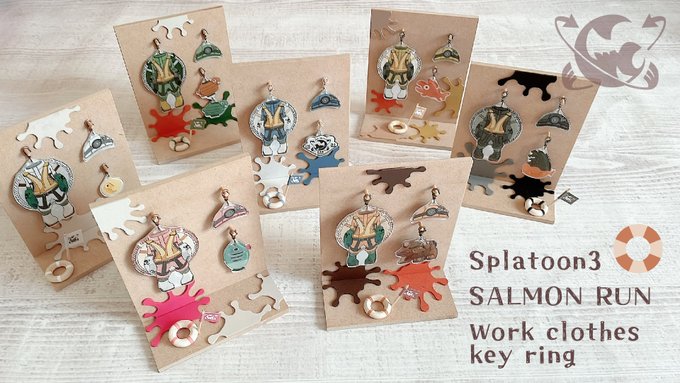 サーモンランのツナギ(作業着)のキーホルダー全色作りました!! あーーーーーー!!めちゃめちゃ楽しかった! メイキング動画はこちらです↓ youtube.com/watch?v=shV0ky… #サーモンラン #サモラン #作ってみた #プラ板 #プラバン #なんでもスプラトゥーン化計画