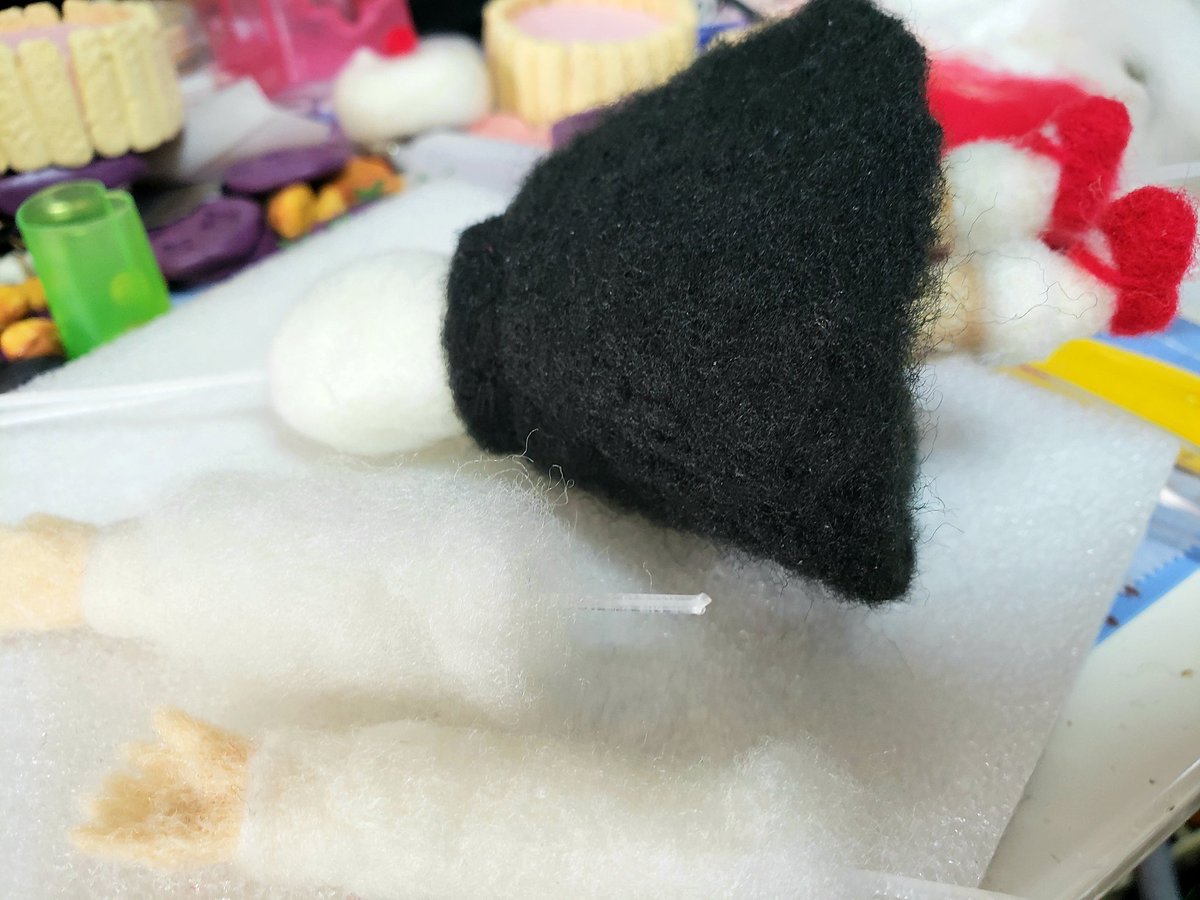 進まなーい( >Д<;) いや、まあ設計図も作らず芯に刺さって針折るの心配しながらじゃ、そりゃ遅いよなあ(ー_ー;) さて、あと何日経ったら完成するのやら(´・ω・`) #羊毛フェルト #ハンドメイド好きさんと繋がりたい #作りかけ