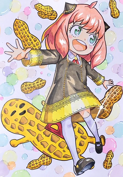 【モシャモシャ生活日記76】 アーニャ出来たー アーニャすごい?ばぁーん☺️ しかし露光かなぁうまく写真に撮れず何か現物と違う… #模写 #ファンアート #SPYFAMILY #アーニャ #作品に想いを込めて模写し背景を考えて描く