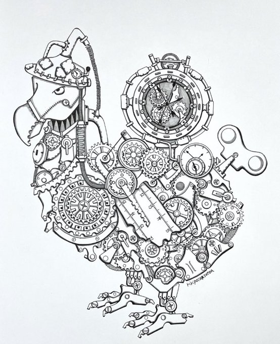 お疲れ様でした✨✨ ゆっくりお過ごしください〰︎(๑˃̵ᴗ˂̵) ⚙ドードー🦤⚙原画 #ドードー #スチームパンクイラスト #歯車イラスト #ペン画 #絵描きさんと繋がりたい #作品をみてくださいあわよくばフォローしてください