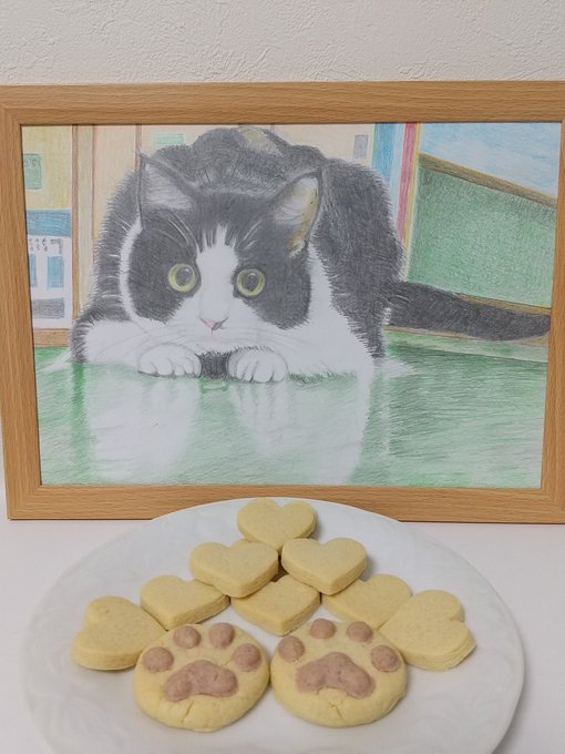 #バレンタインデー なので、これまでに描かせて頂いた猫ちゃんを代表してこの子にクッキー🍪を焼いてみました💝 肉球が少し割れてしまいましたが、味は🆗です😅 皆様が幸せなバレンタインデーを過ごせますように🍀🙏 タグお借り致しますm(_ _)m #作品を載せて福を呼び寄せよう